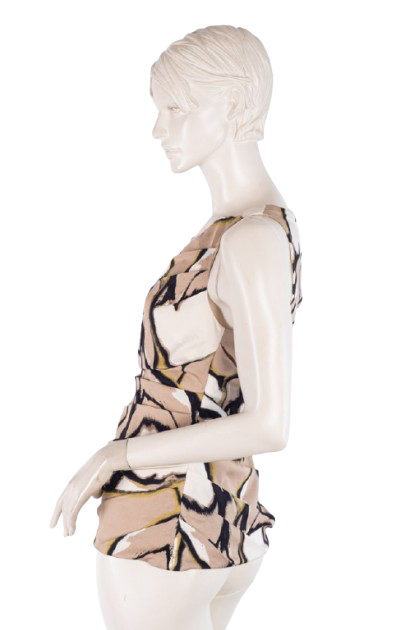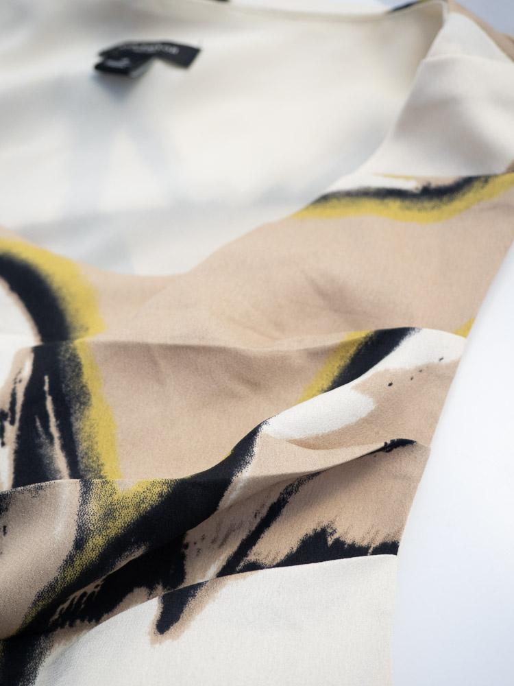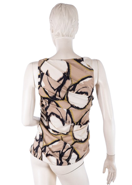 Top z jedwabiu na ramiączkach. Materiał ozdobnie marszczony.