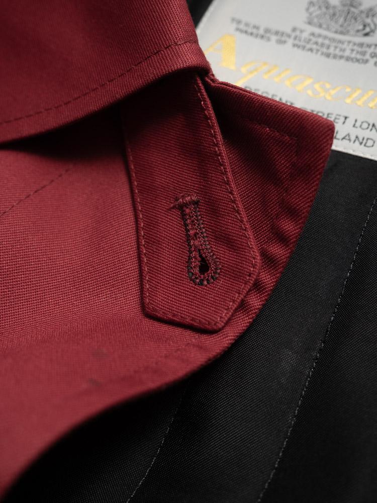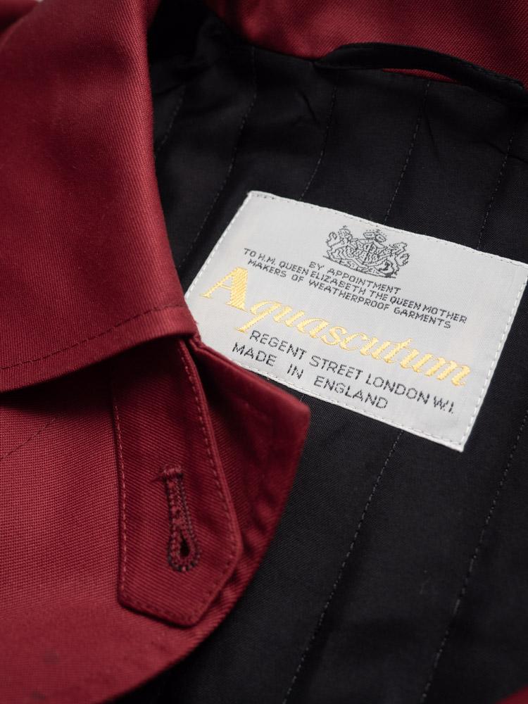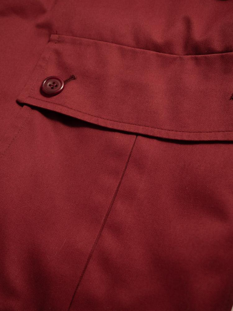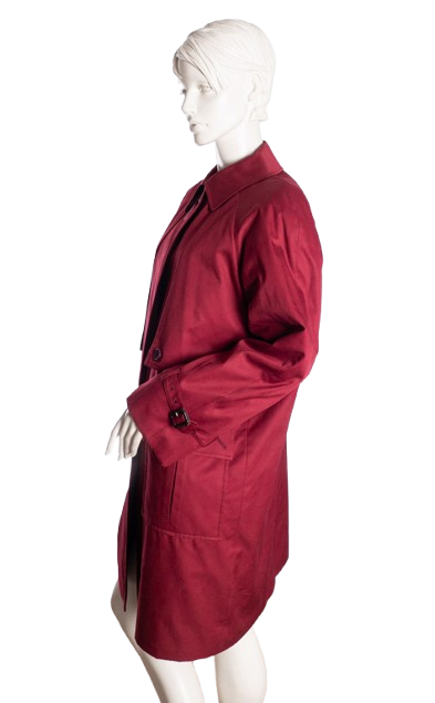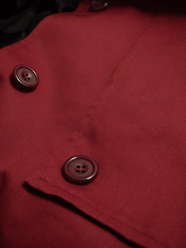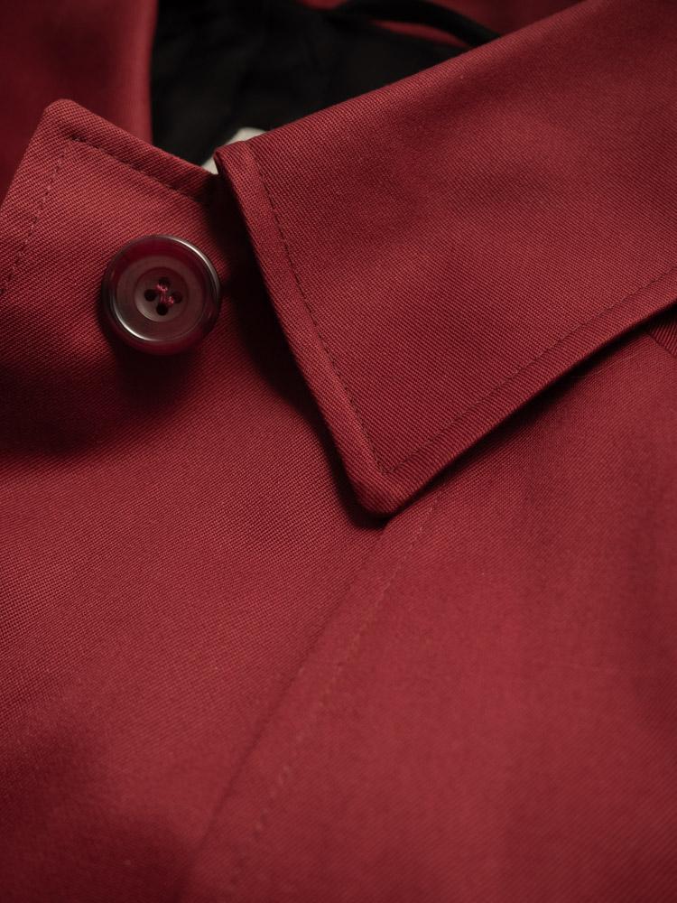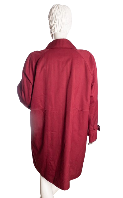 Ocieplany płaszcz w burgundowym kolorze. Typ trencz.