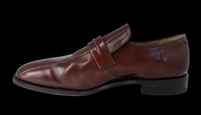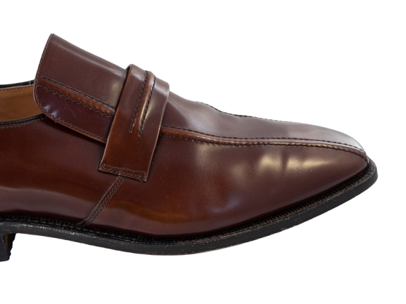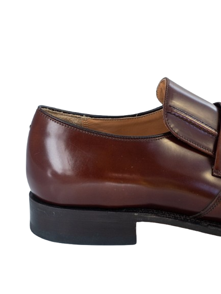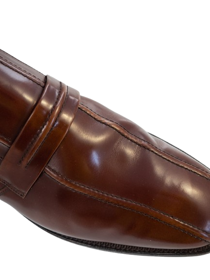 Męskie skórzane loafersy w bordowym kolorze.