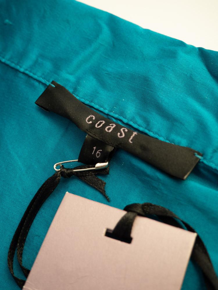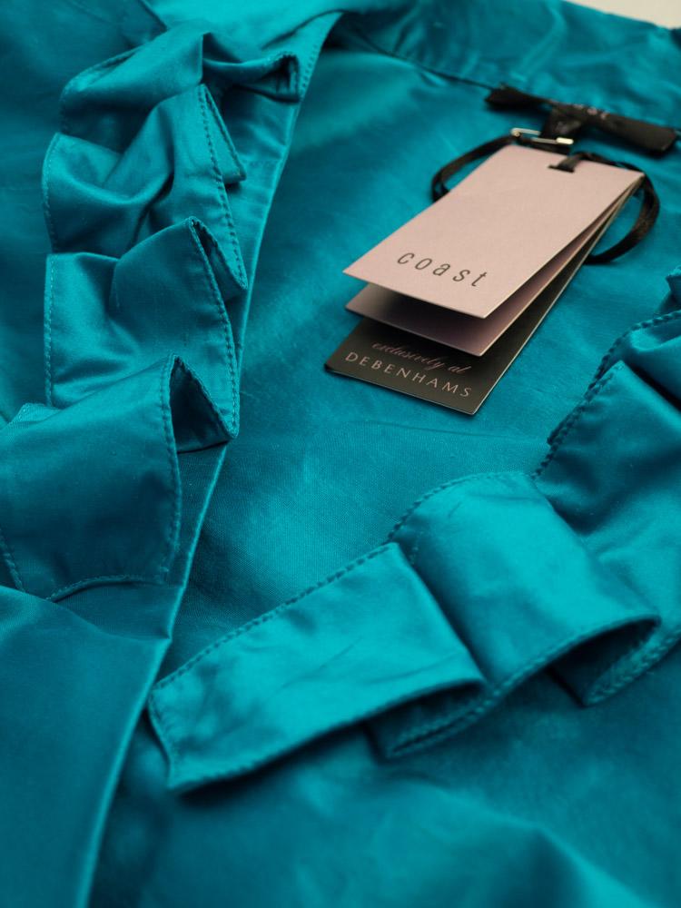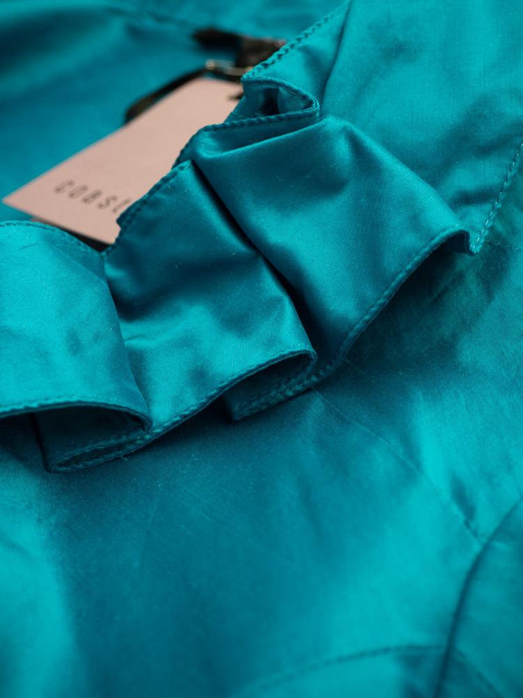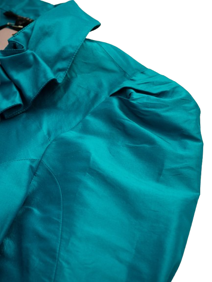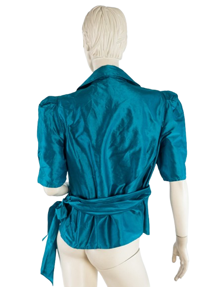 Bluzka z naturalnego jedwabiu w turkusowym kolorze. Dekolt kopertowy.