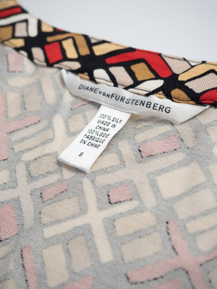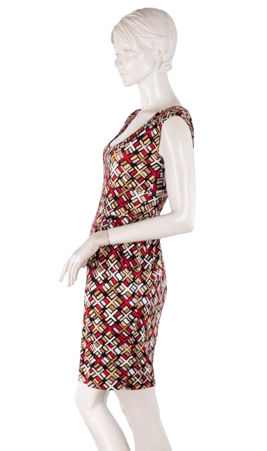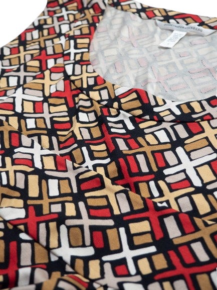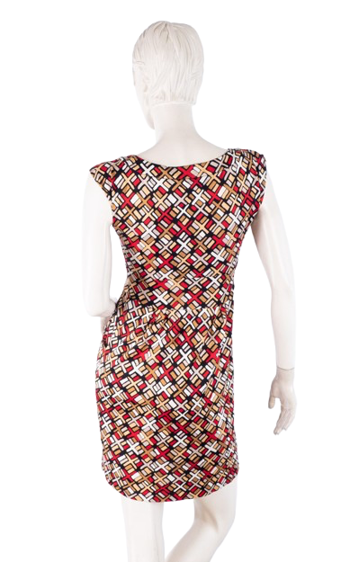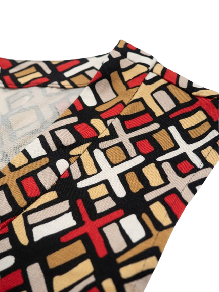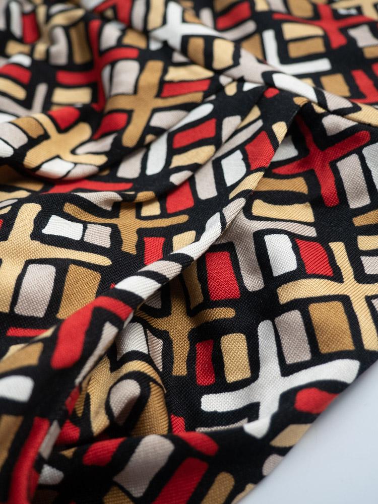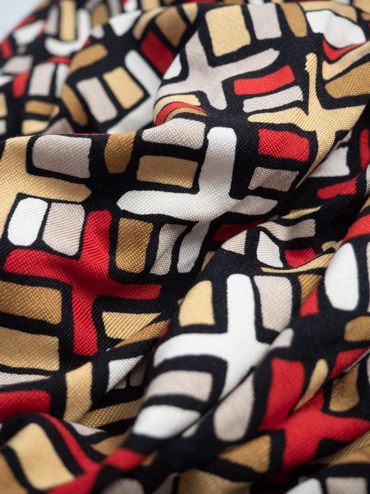 Luksusowa sukienka z naturalnego jedwabiu. Ozdobiona geometrycznym wzorem.