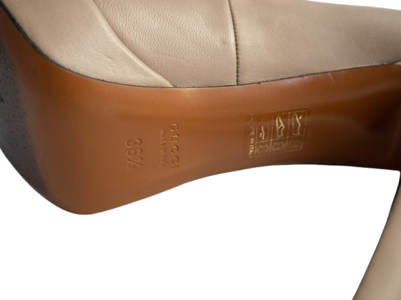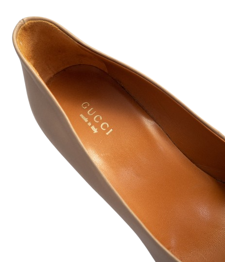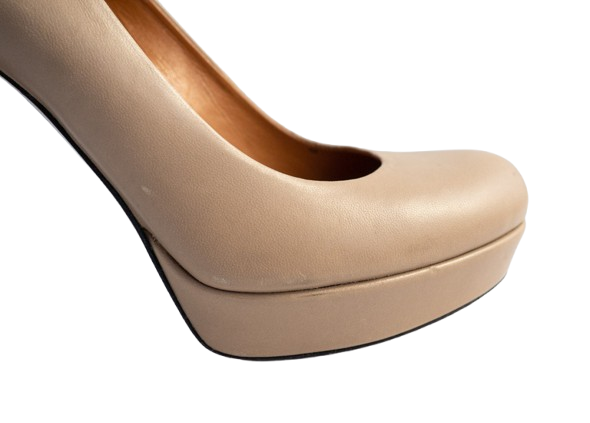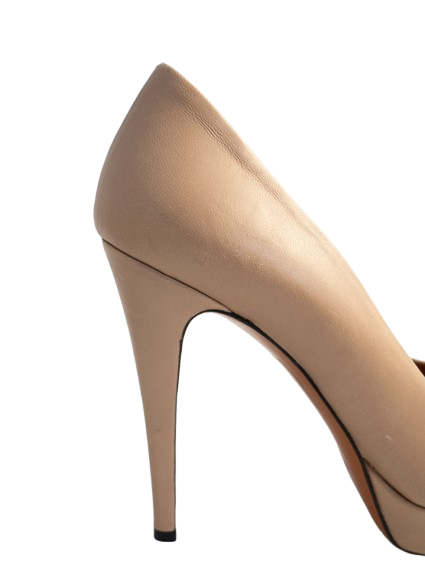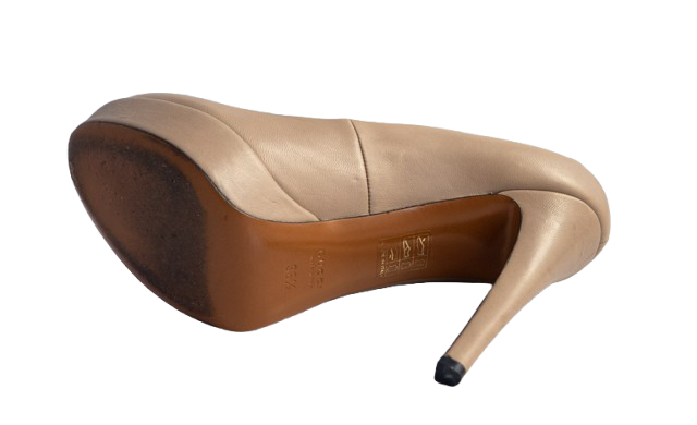 Luksusowe skórzane szpilki w beżowym kolorze.