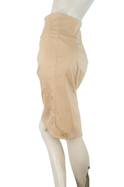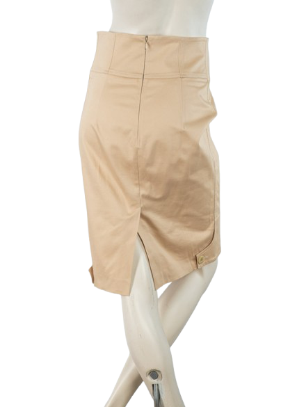 Spódnica w beżowym kolorze o ołówkowym korju.