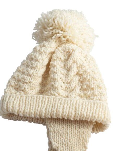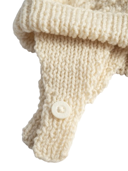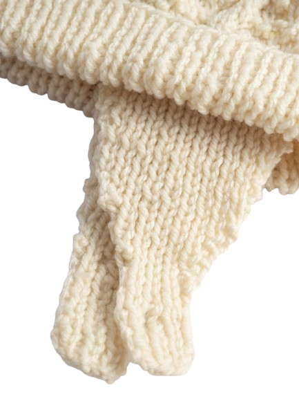 Ręcznie robiona czapka z wełny w kolorze kremowym.
