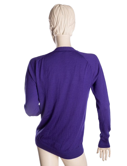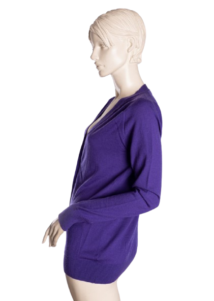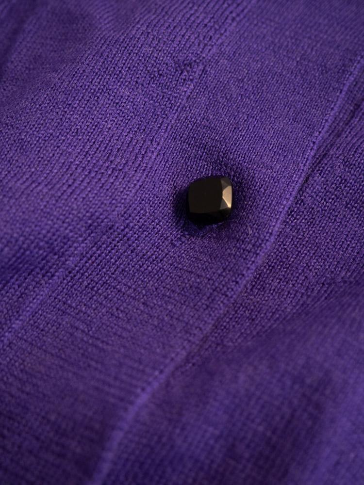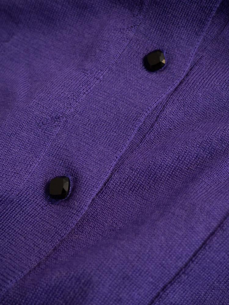 Kardigan w kolorze fioletowym. Zapinany na ozdobne guziki.