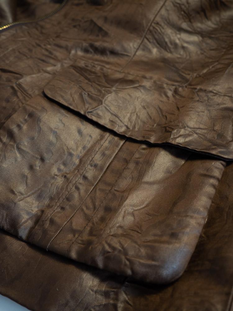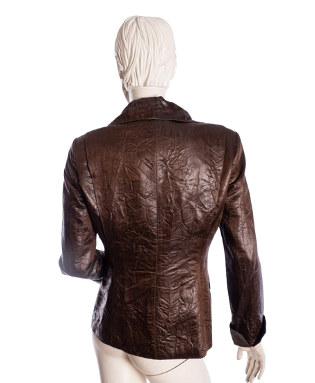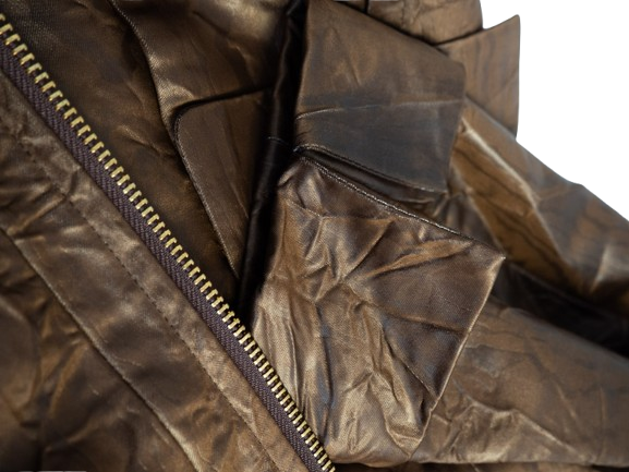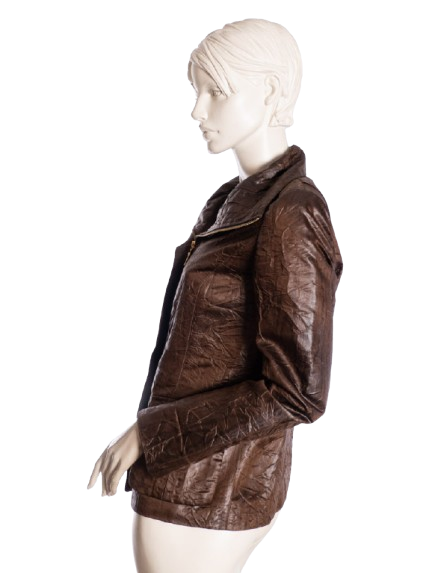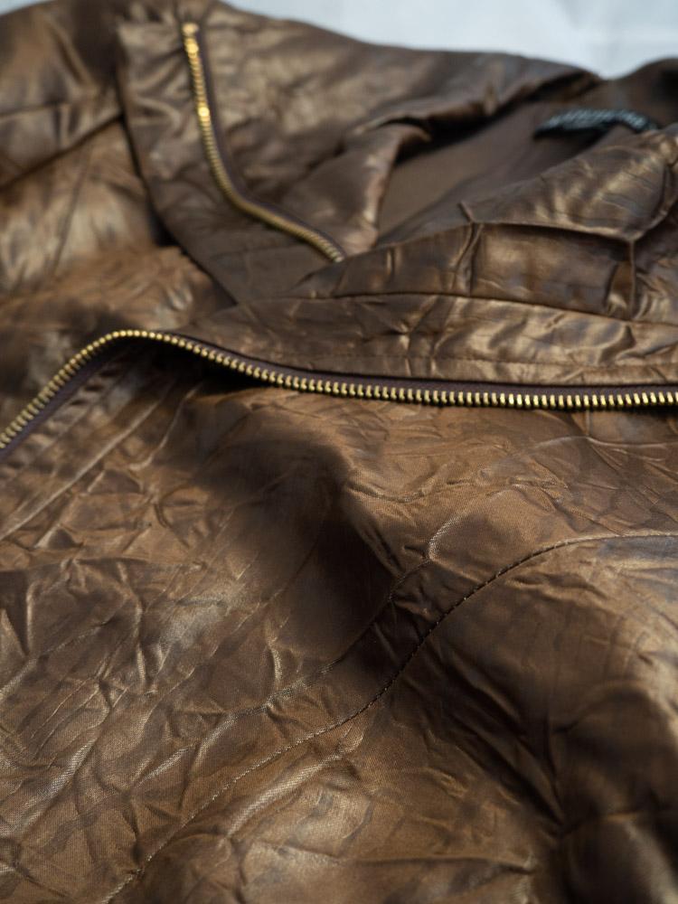 Luksusowa kurtka w czekoladowo-miedzianym kolorze. Zapinana na zamek.