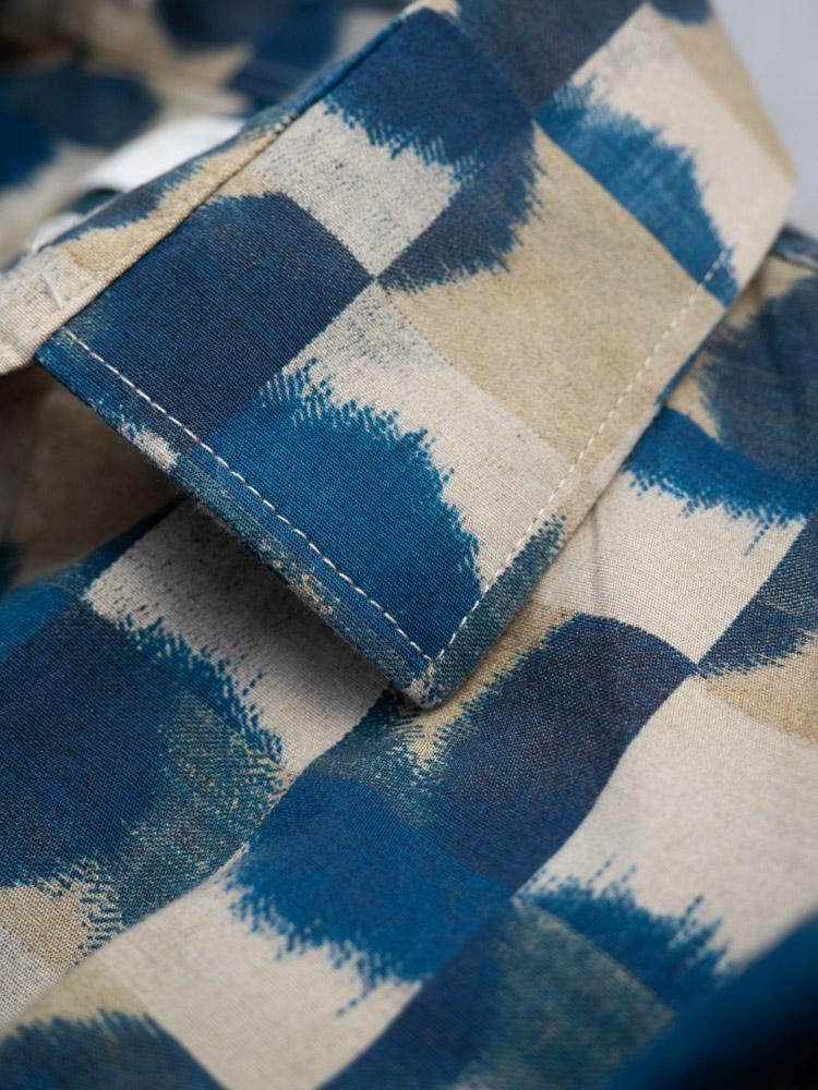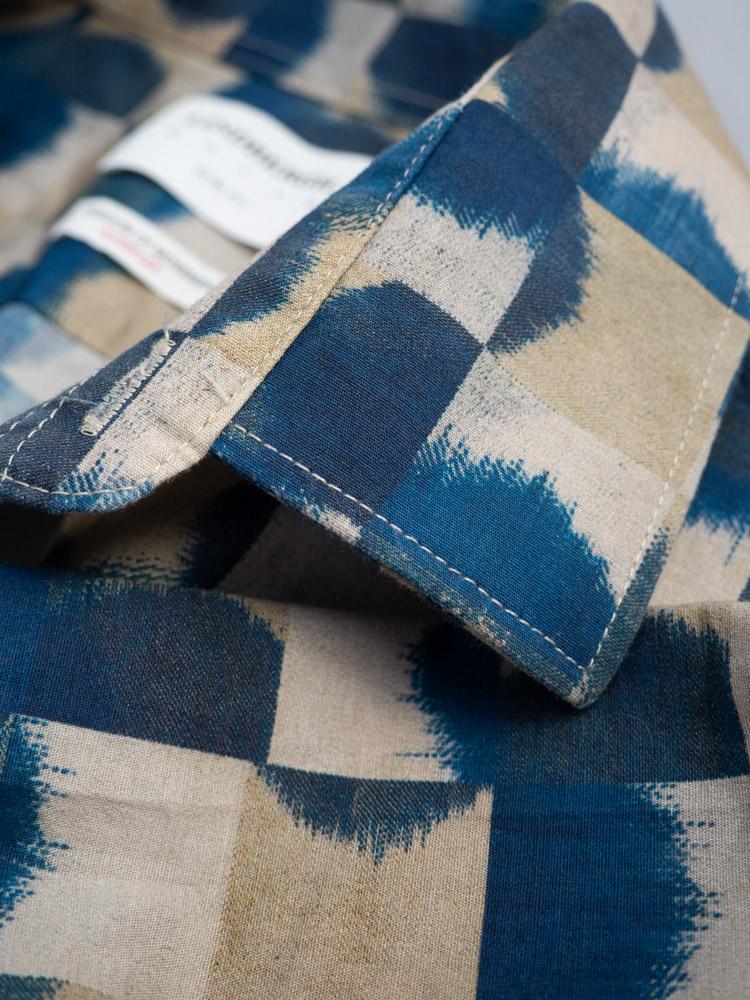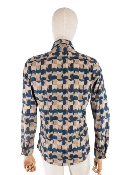 Męska koszula w beżowo-niebieskim kolorze. Model Slim Fit.