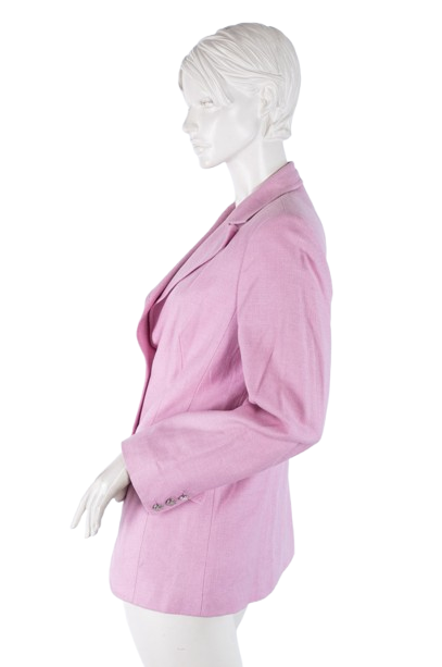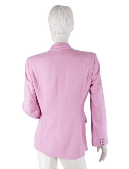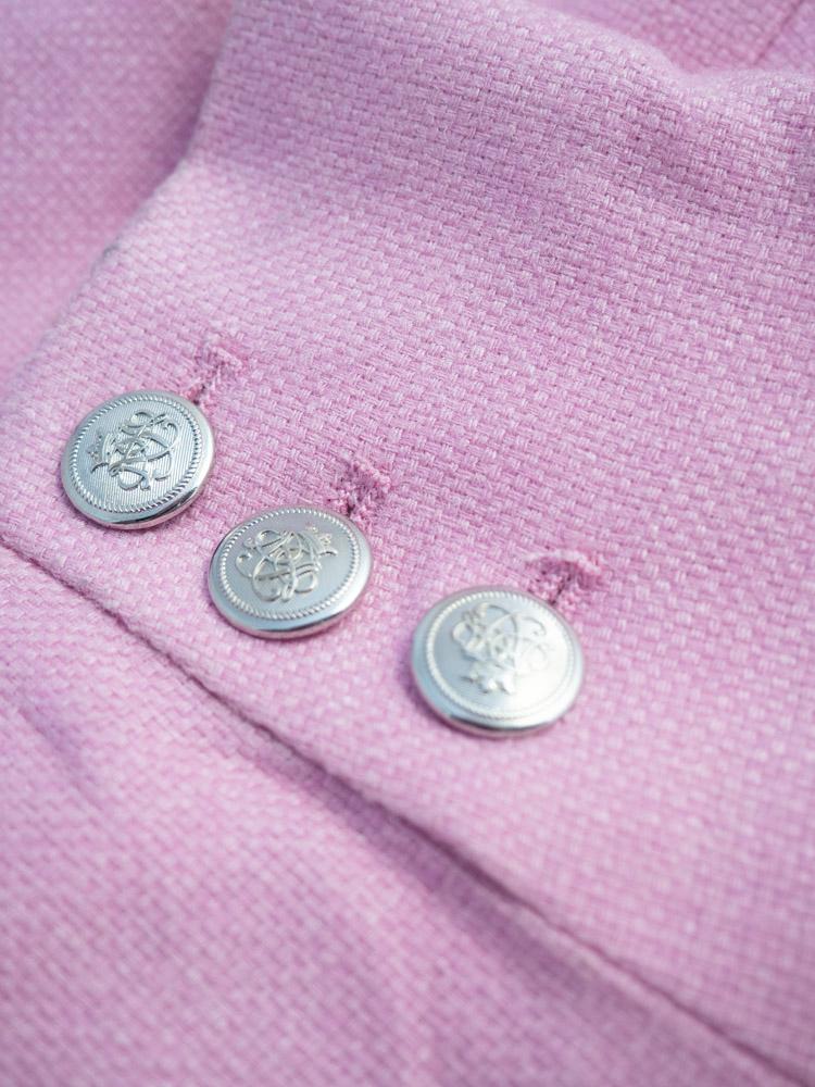 Marynarka w kolorze pudrowego różu. Zapinana na dwa ozdobne guziki.