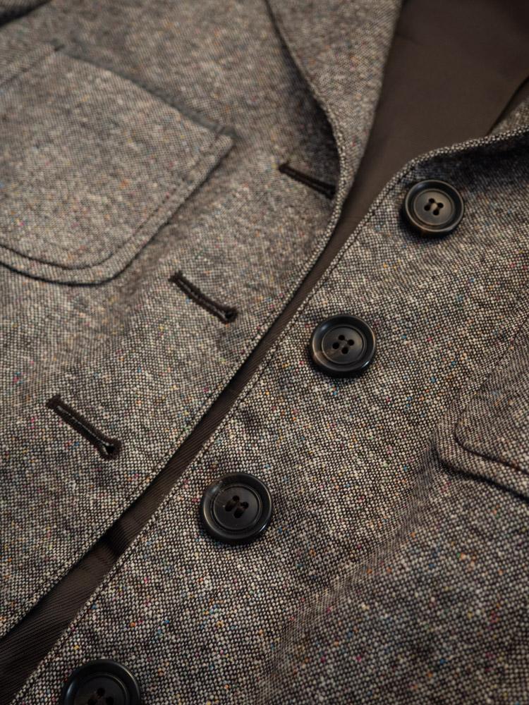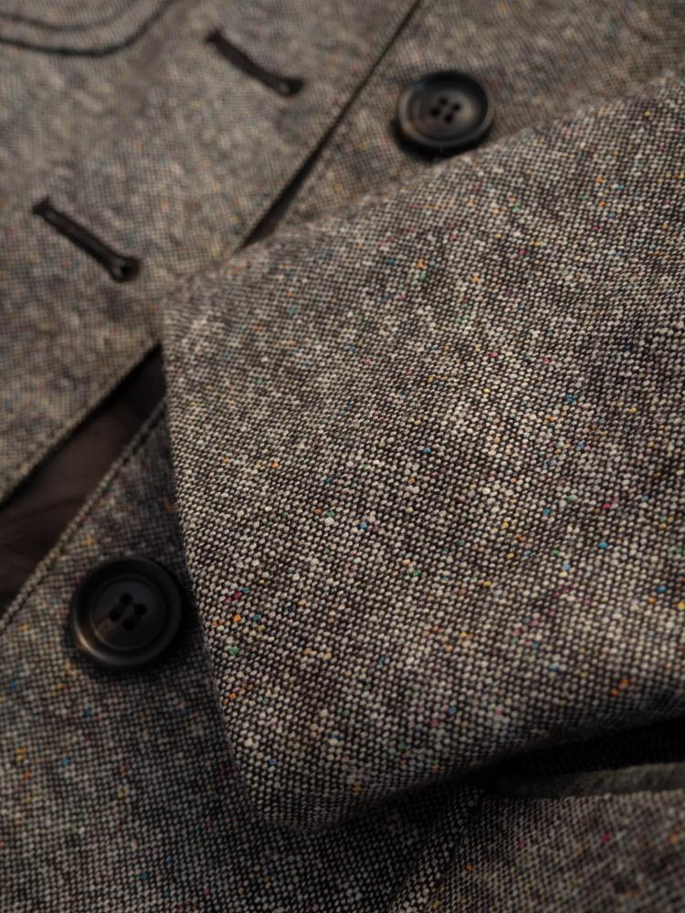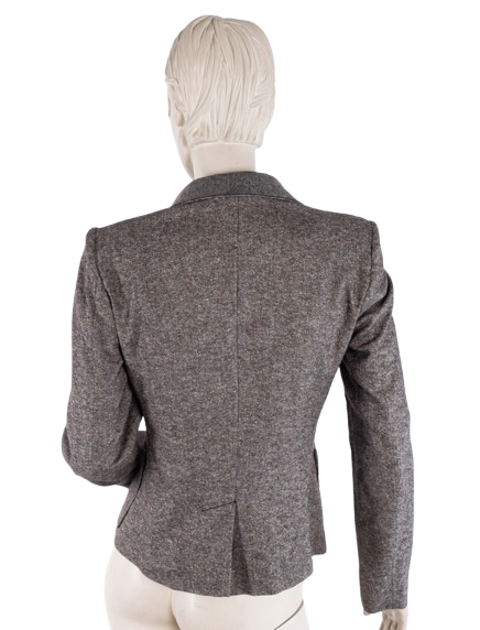 Wełninana marynarka z kieszeniami w beżowo-szarym kolorze.