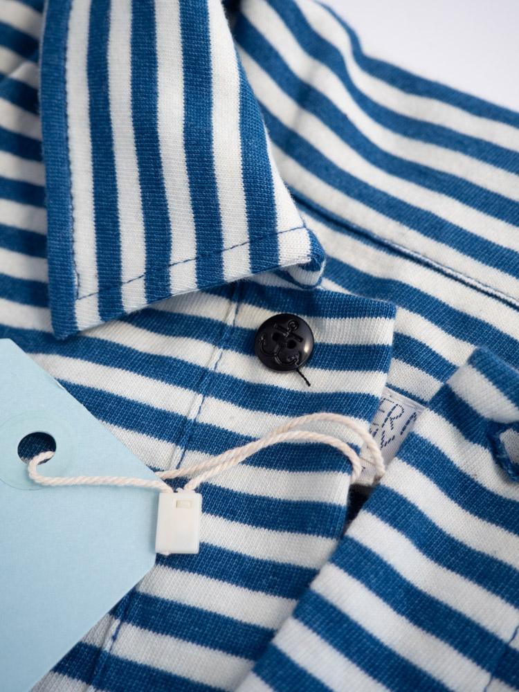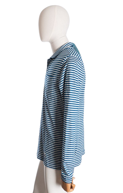 Męska bawełniana bluzka w paski. Pod szyją kołnierzyk.