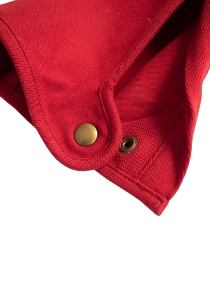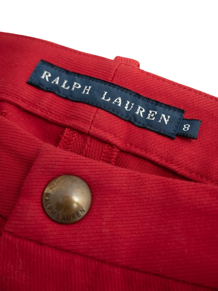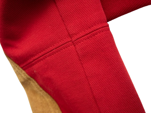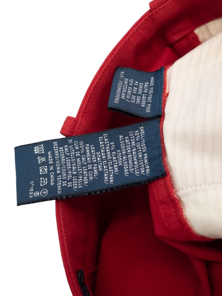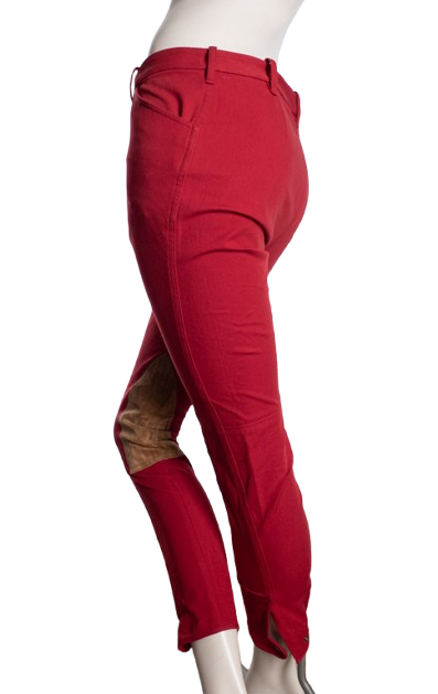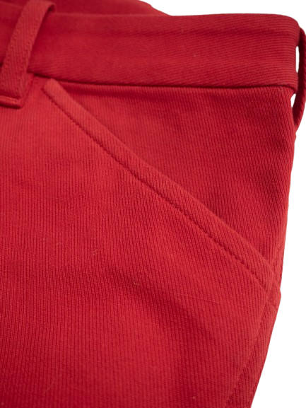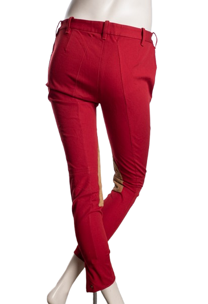 Elastyczne bryczesy w czerwonym kolorze. Zapinane na logowane zatrzaski.