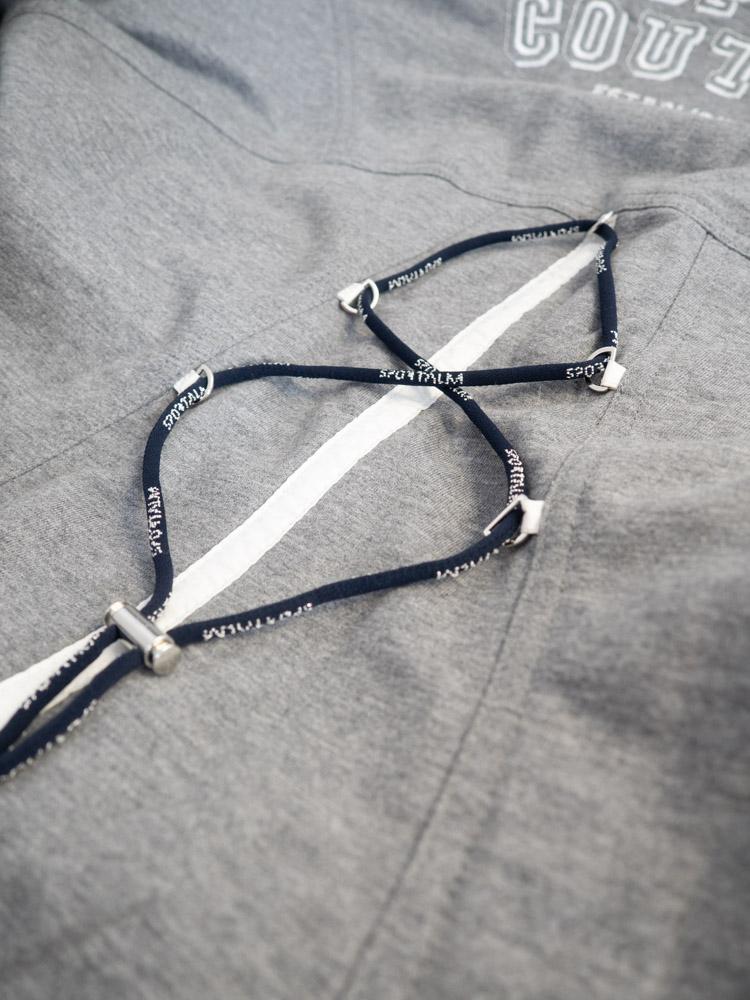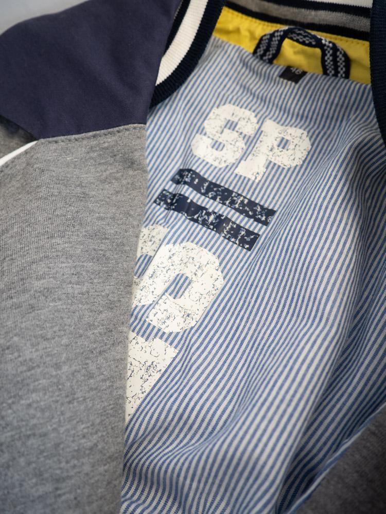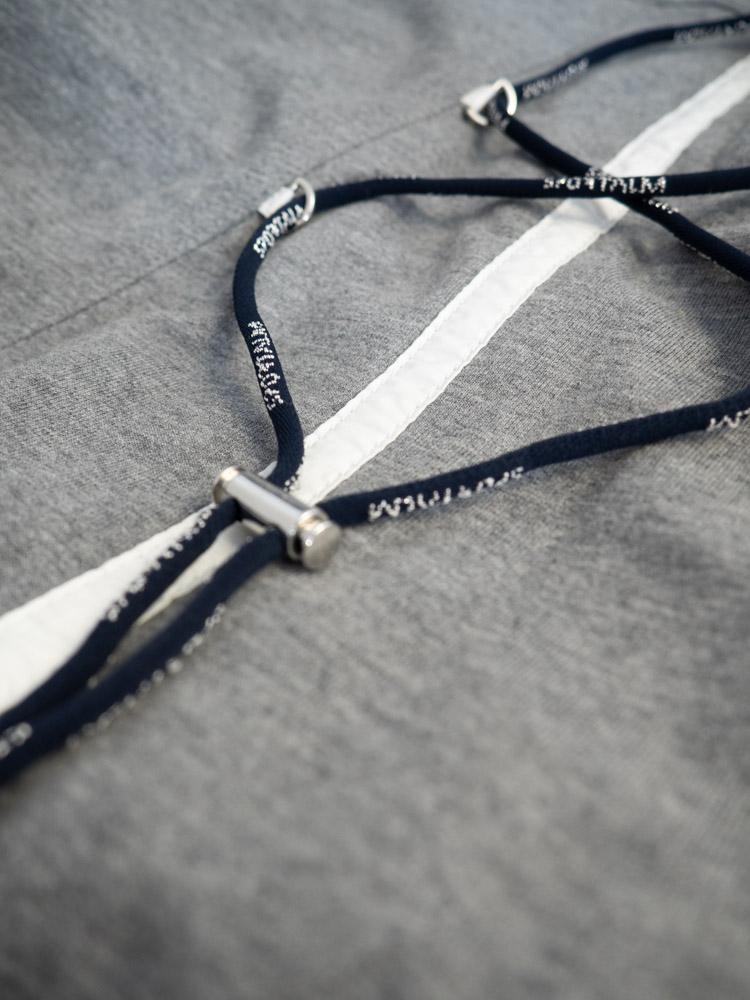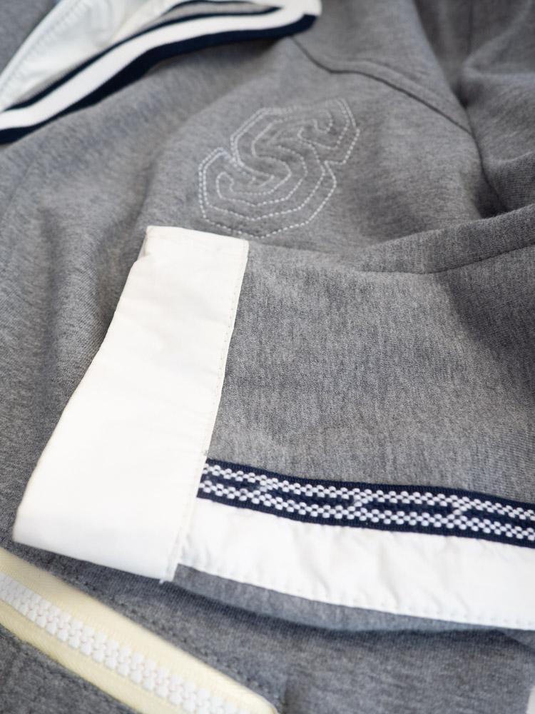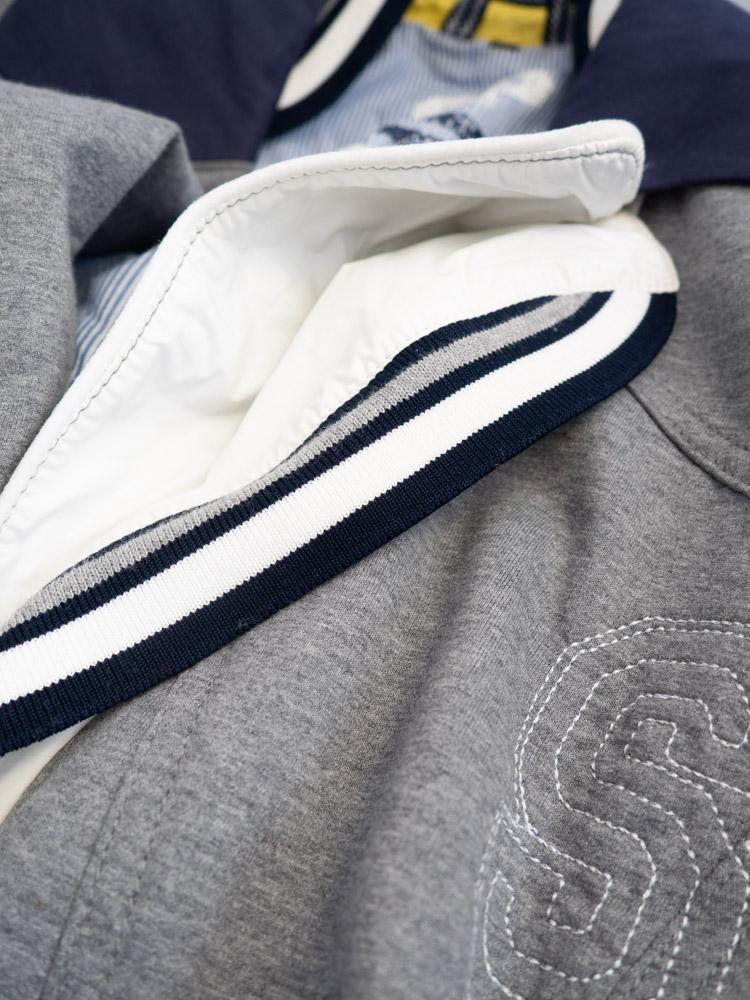 Luksusowa marynarka w szarym kolorze z dresowego materiału.