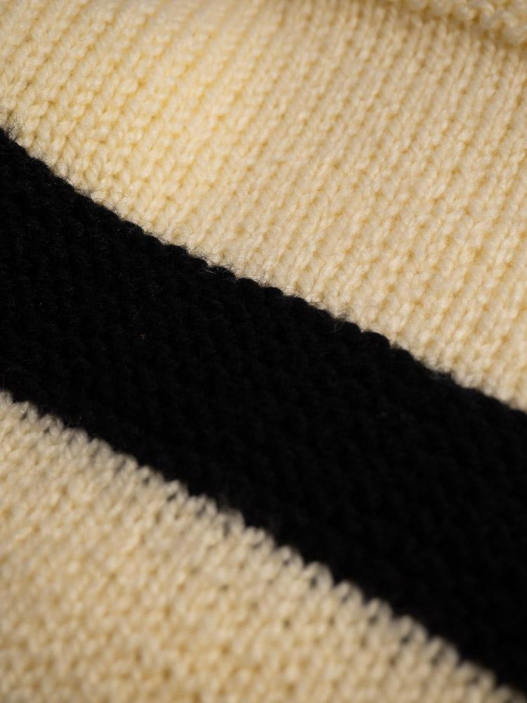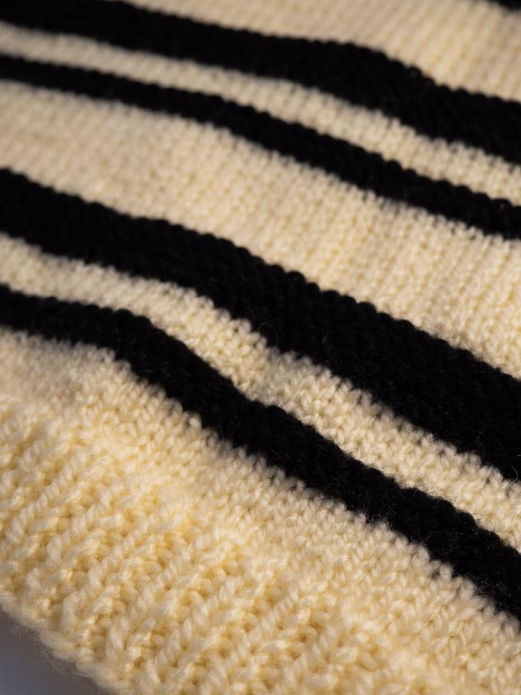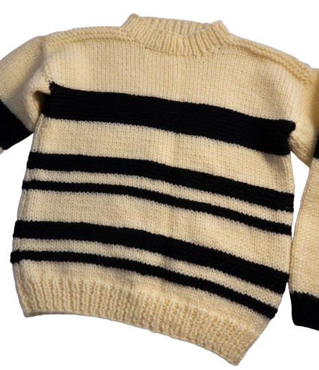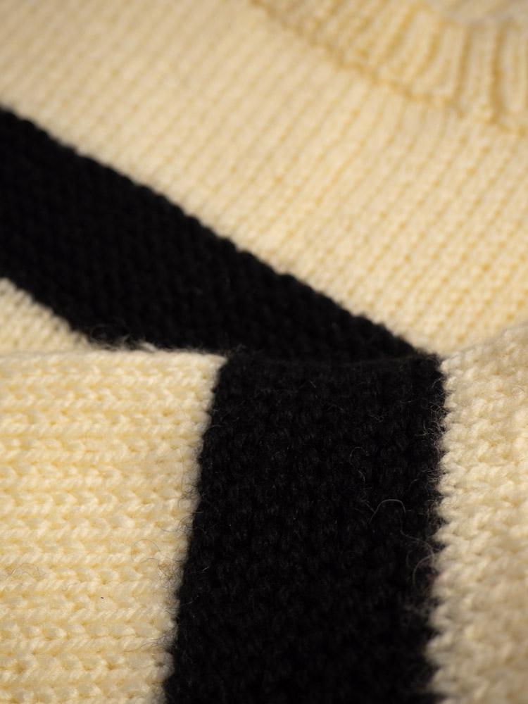 Ręcznie tkany wełniany sweterek w kremowo-czarnym kolorze.