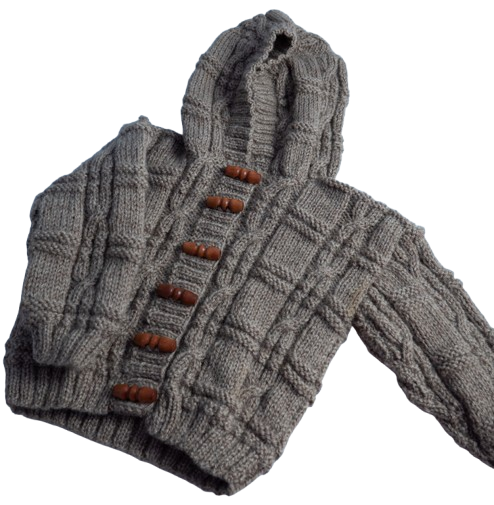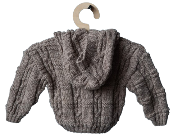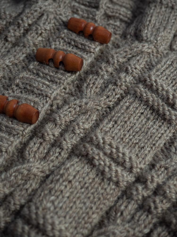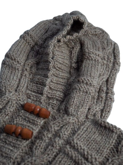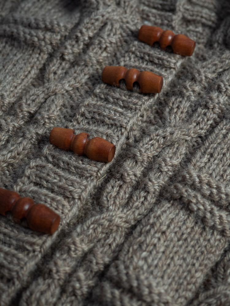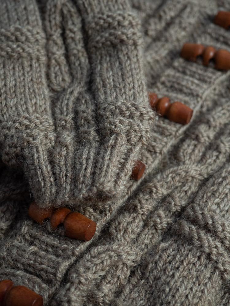 Ręcznie tkany wełniany kardigan w kolorze kawy z mlekiem.