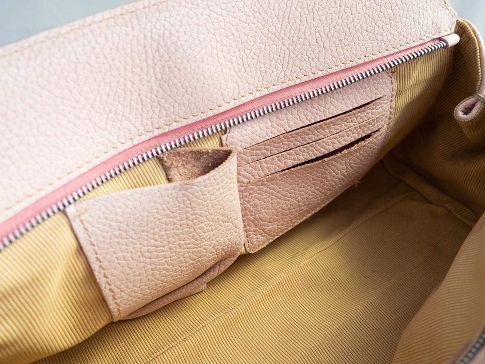 Luksusowa skórzana torebka w kolorze pudrowego różu.