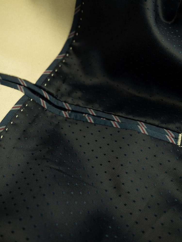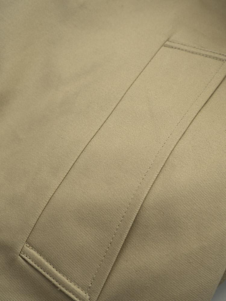 Bawełna gęsta w splocie. Posiada kieszenie. Podszewka w kolorze granatowym.