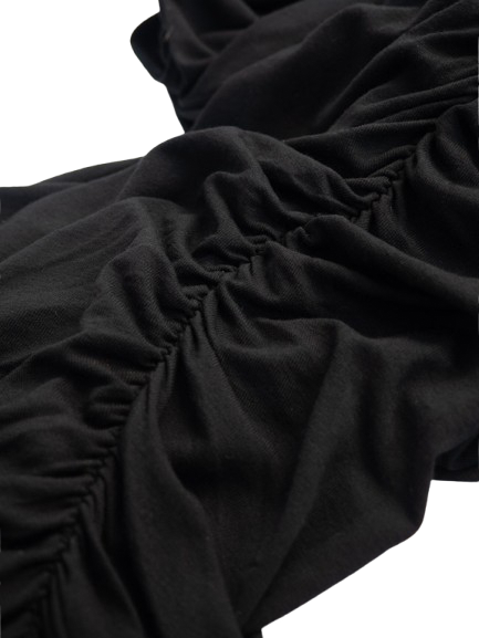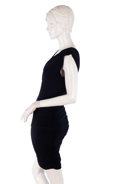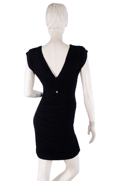 Elastyczna mała czarna podkreślająca figurę. Materiał marszczony. Posiada podszewkę.
